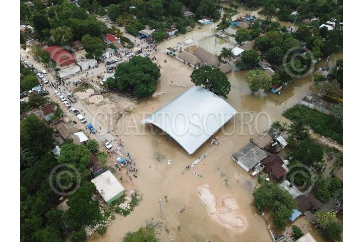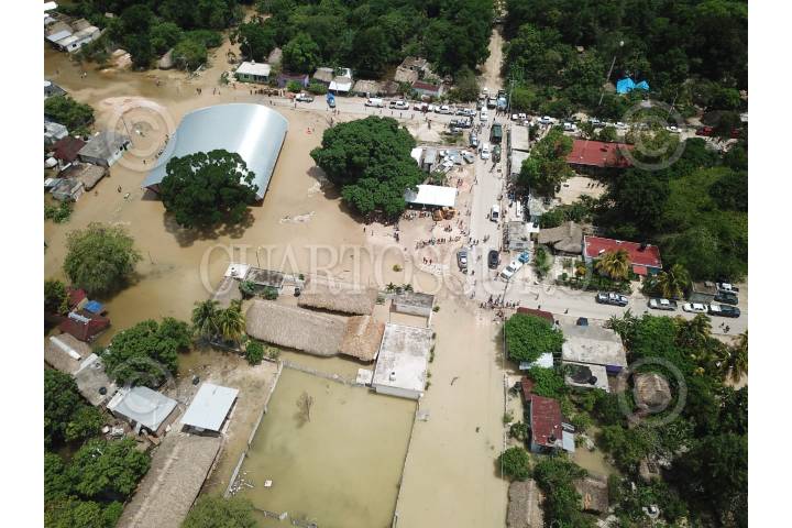 FELIPE CARRILLO PUERTO, QUINTANA ROO, 19JUNIO18 .-Comunidad de Chumpón en el municipio de Felipe Carrillo Puerto, tomada desde el cielo y donde se aprecia las afectaciones que sufrió, por las inundaciones que arrojaron las lluvias de la onda tropical número cuatro. FOTO: CUARTOSCURO.COM