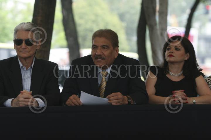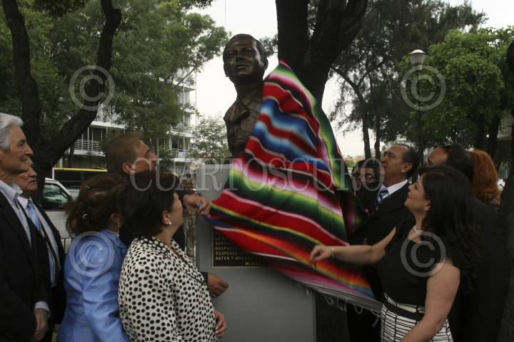 MÉXICO, D.F., 25JULIO2012.- Los compositores, Felipe Gil y Martín Urieta, representando a la Sociedad de Autores y Compositores y Gabriela Méndez, hija del compositor fresnillense, Tomás Méndez Sosa, develaron la tarde de hoy un busto en su honor; el autor de "Currucucu Paloma" y "La Muerte de un Gallero" tendra su efigio en la plaza de los compositores ubicada en la esquina de avenida Patriotismo y Alfonso Reyes en la Colonia Condesa. FOTO: FRANCISCO RODRÍGUEZ /CUARTOSCURO.COM