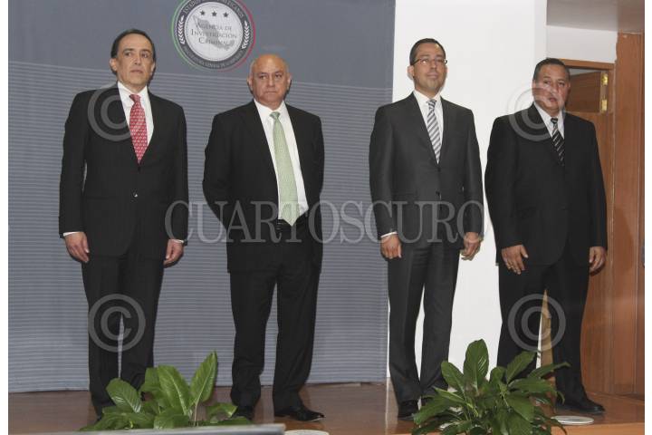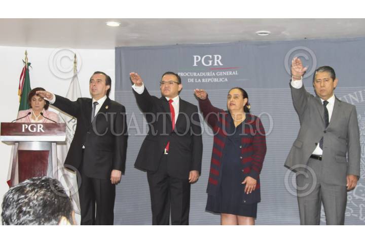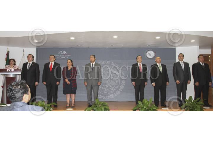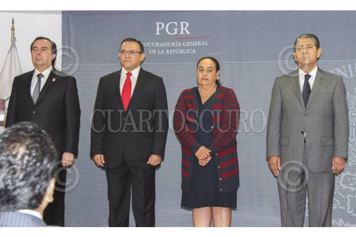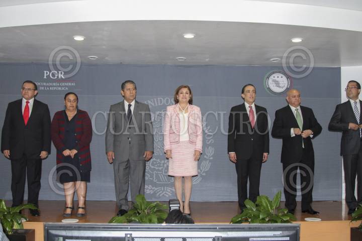 MÉXICO, D.F. 23MARZO2015.- Arely Gómez Titular de la PGR, anunció y tomo protesta a Tomás Zerón de Lucio como director de la Agencia de Investigación Criminal, Felipe de Jesús Muñoz Vázquez, subprocurador Especializado en Investigación de Delincuencia Organizada, Gilberto Higuera Bernal, subprocurador de Control Regional, Procedimientos Penales y Amparo, José Guadalupe Medina Romero, subprocurador Especializado en Investigación de Delitos Federales, César Alejandro Chávez Flores, visitador General, Samuel Valentín Jiménez Calderón, Oficial Mayor, Salvador Sandoval Silva, coordinador de Asesores y Eleana García Laguna, encargada de la Subprocuraduría de Derechos Humanos, Prevención del Delito y Servicios a la Comunidad. FOTO: SAÚL LÓPEZ /CUARTOSCURO.COM