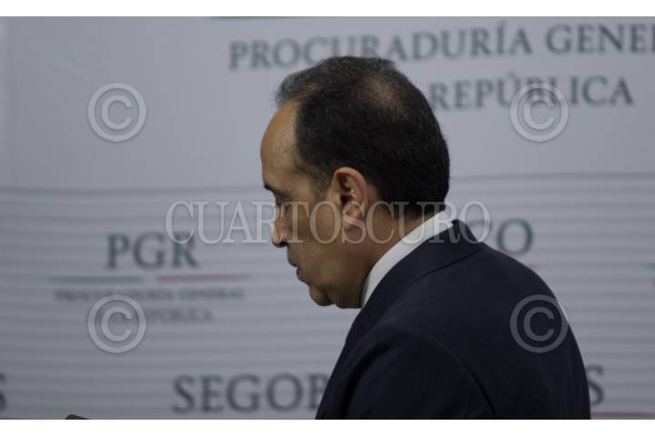 CIUDAD DE MÉXICO, 27SEPTIEMBRE2018.- Felipe de Jesús Muñoz Vázquez, subprocurador especializado en Investigación de Delitos Federales de la Procuraduría General de la República (PGR), ofreció conferencia de prensa para dar detalles acerca de la sentencia dictada, de nueve años, contra el ex gobernador de Veracruz, Javier “D”. Jesús Muñoz sostuvo que la PGR no esta conforme con la sentencia, sin embargo destacó que la ley no es a modo y estamos apegados a este marco jurídico. De igual modo, se le cuestionó acerca de la liberación, el día de ayer, de ocho presuntos integrantes de Guerreros Unidos señalados como elementos clave en la investigación sobre la desaparición de los 43 normalistas de Ayotzinapa, el subprocurador no emitió comentarios al respecto. FOTO: GALO CAÑAS /CUARTOSCURO.COM