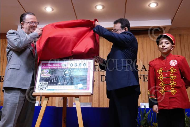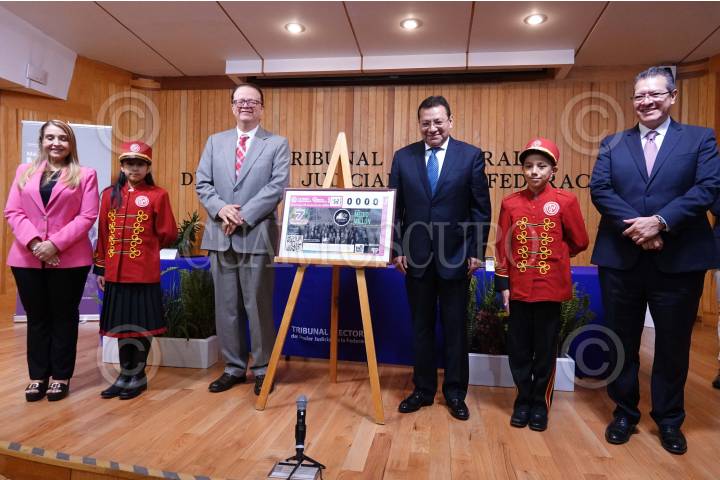 CIUDAD DE MÉXICO, 13JUNIO2024.- Marco Antonio Mena Rodríguez, director de la Lotería Nacional, y los magistrados Felipe Fuentes Barrera y Felipe de la Mata Pizaña, durante la develación del billete de Lotería Nacional Conmemorativo “Más de medio millón de personas egresadas en los últimos cinco años”, realizada en el Tribunal Electoral del Poder Judicial de la Federación (TEPJF). FOTO: GRACIELA LÓPEZ /CUARTOSCURO.COM