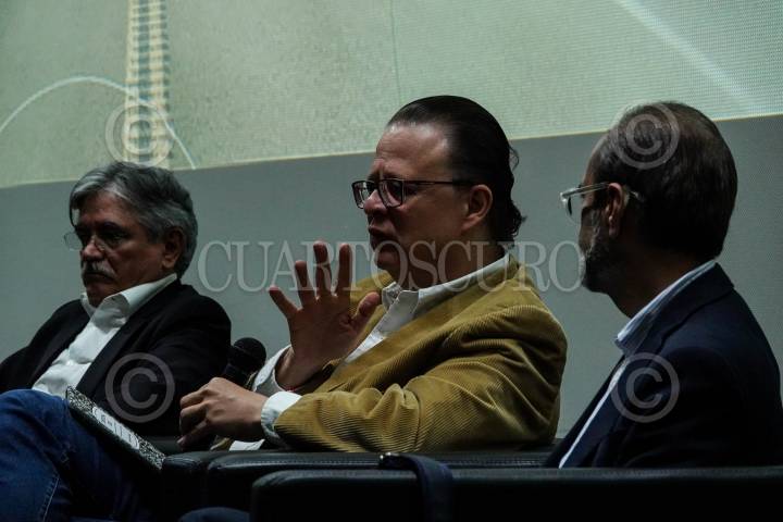 CIUDAD DE MÉXICO, 14JUNIO2024.- El economista Leonardo Valdés Zurita; Felipe de la Mata Pizaña, autor y magistrado de la Sala Superior del Tribunal Electoral del Poder Judicial de la Federación (TEPJF), y el novelista Héctor Zagal, participaron en la presentación del libro “Las Heridas” escrito por el magistrado de la Mata Pizaña. FOTO: GALO CAÑAS/CUARTOSCURO.COM