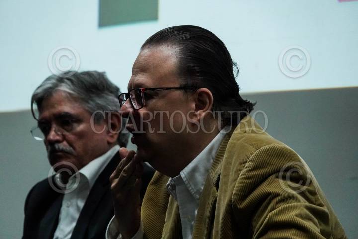 CIUDAD DE MÉXICO, 14JUNIO2024.- El economista Leonardo Valdés Zurita, y Felipe de la Mata Pizaña, autor y magistrado de la Sala Superior del Tribunal Electoral del Poder Judicial de la Federación (TEPJF), durante la presentación del libro “Las Heridas” escrito por el magistrado de la Mata Pizaña. FOTO: GALO CAÑAS/CUARTOSCURO.COM