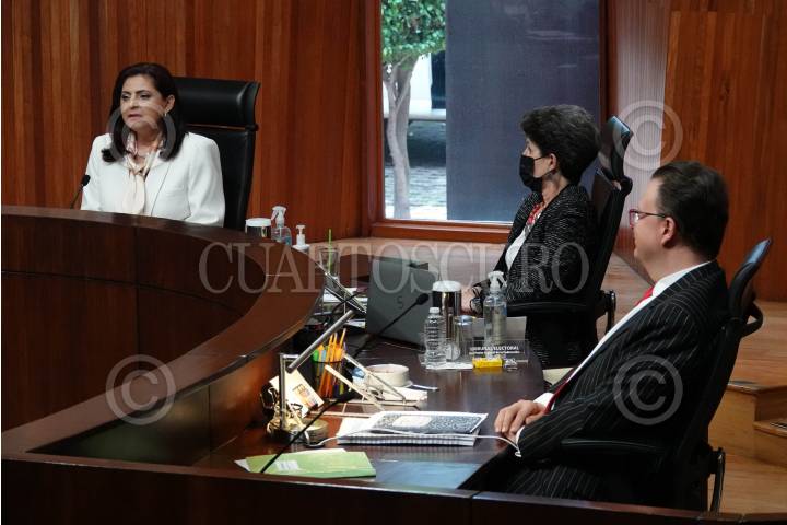 CIUDAD DE MÉXICO, 26JUNIO2024.- Sin la presencia del magistrado Reyes Rodríguez Mondragón fue realizada la sesión pública de la Sala Superior del Tribunal Electoral del Poder Judicial de la Federación (TEPJF) con la asistencia de: Los magistrados Felipe Alfredo Fuentes, Felipe de la Mata Pizaña y Janine M. Otálora, así como de la presidentaMónica Aralí Soto Fregoso. FOTO: GALO CAÑAS/CUARTOSCURO.COM