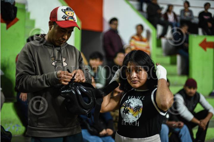 SAN CRISTÓBAL DE LAS CASAS, CHIAPAS, 13OCTUBRE2024.- Se llevaron a cabo una sesión de trece peleas de boxeo amateur en el tradicional Palenque de la ciudad. Diferentes gimnasios de ciudades como Comitán, Estado de México y San Cristóbal de las Casas llevaron a sus mejores boxeadores quienes eran apoyados por sus entrenadores, compañeros y familias. No solo se vivieron peleas varoniles, sino que también muchas mujeres jóvenes subieron al cuadrilátero. FOTO: ISABEL MATEOS /CUARTOSCURO.COM