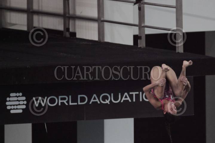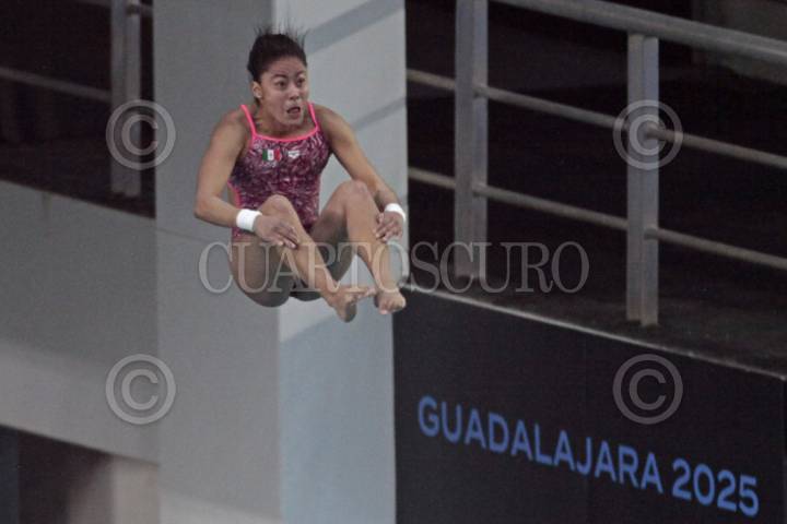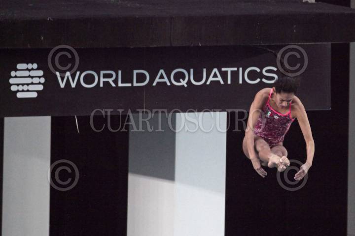 ZAPOPAN, JALISCO. 05ABRIL2025.- Hoy en el Centro Acuático Metropolitano y durante la justa deportiva del Mundial de Clavados Guadalajara 2025, se llevo a cabo la final en Plataforma de 10 metros femenil, en donde la mexicana Alejandra Estudillo obtuvo la 4ta posición durante la competencia. FOTO: FERNANDO CARRANZA GARCIA / CUARTOSCURO.COM