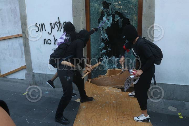 Mujeres protestarona cinco meses de la represión policial del 9N para exigir atención y acciones en contra de los responsables. Así como, justicia por las vicitmas de feminicidio recientes.