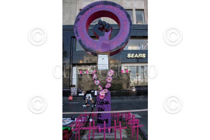 El pasado jueves por la madrugada integrantes del bloque Negro pintaron de negro y dejaron mensajes. La antimonumenta fue colocada en 2019 frente al Palacio de Bellas Artes por madres de víctimas de feminicidio. Por ahora colectivas feministas resguardan la zona para poderle dar mantenimiento.