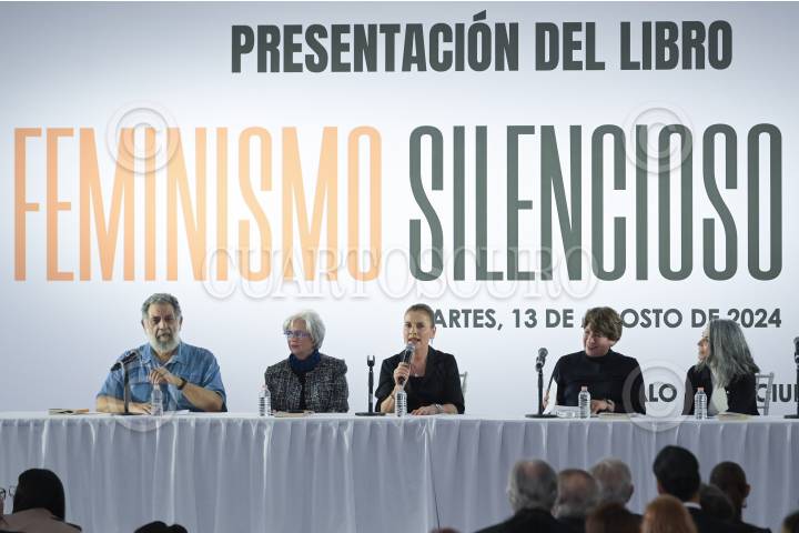 CIUDAD DE MÉXICO, 13AGOSTO2024.- Simpatizantes durante para la presentación del libro “Feminismo Silencioso” en la plancha del Zócalo. FOTO: ANDREA MURCIA /CUARTOSCURO.COM