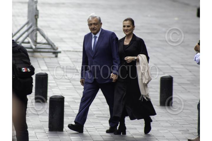 CIUDAD DE MÉXICO, 13AGOSTO2024.- Andrés Manuel López Obrador, presidente de México y Beatriz Gutiérrez Müller a su llegada para la presentación del libro “Feminismo Silencioso” en la plancha del Zócalo. FOTO: ANDREA MURCIA /CUARTOSCURO.COM
