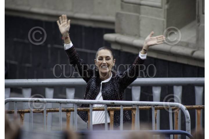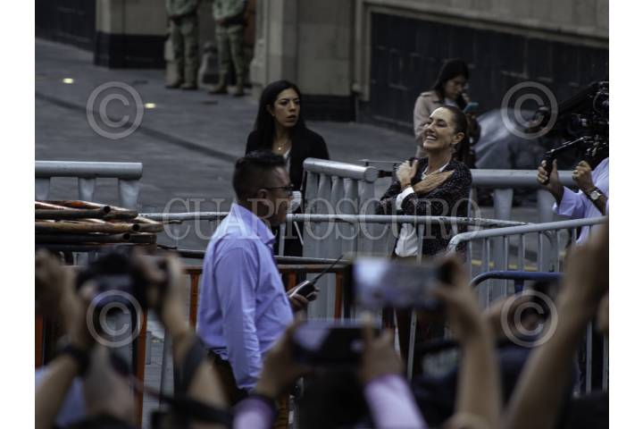 CIUDAD DE MÉXICO, 13AGOSTO2024.- Claudia Sheinbaum Pardo, a su llegada para la presentación del libro “Feminismo Silencioso” en la plancha del Zócalo. FOTO: ANDREA MURCIA /CUARTOSCURO.COM