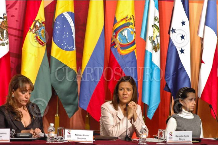 MÉXICO, D.F., 02AGOSTO2008.- Xomara Castro, primera dama de Honduras; junto a Margarita Zavala de México y Luisa Moreno, de Colombia; durante la inauguración de la V reunión "Deteniendo la Feminización de la Epidemia: Acciones de Prevención y Salud de las Mujeres" dentro de la coalición de primeras damas y mujeres lideres de America Latina, foro donde se habló crear compromisos políticos y medidas de protección contra la epidemia, asisten las primeras damas de México, Honduras, Colombia, Surinam y Panamá, así como 200 participantes de 18 naciones de la región. FOTO: FELIPE CASTELLANOS/CUARTOSCURO.COM