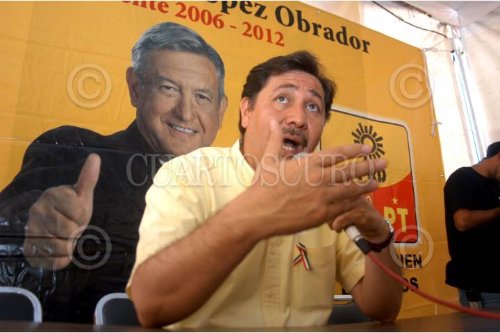 MÉXICO D.F. 15 AGOSTO2006.- Gerardo Fenández Noroña, vocero del PRD, durante su conferecia de prensa en el comapameto que se mantiene en el Zócalo, donde menciono que el "2 de Septiembre no sera un dia de campo para Fox". FOTO: Guillermo Perea/CUARTOSCURO.COM