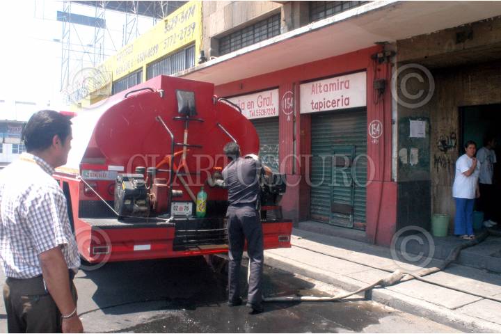 MÉXICO, D.F., 09ABRIL2009.- Elementos del cuerpo de bomberos de la estación Ave Fenix de la Delegación Cuauhtémoc. Reparten agua en calles de la colonia Guerrero en apoyo al desabasto de agua. FOTO: LUIS CARBAYO/CUARTOSCURO.COM