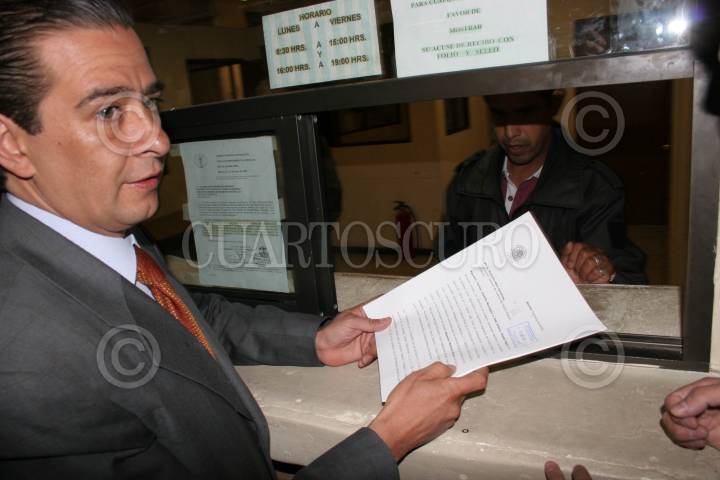 MÉXICO, D.F. 11ABRIL2007.- En la Procuraduria General de Justicia de la Nación se dieron cita los diputados Agustin Castillas Marroquin y Jose Antonio Zepeda para presentar una denuncia con relación al fideicomiso "Ave Fenix". El diputado Agustin Castillas hace entrega de la denuncia en la PGJDF. FOTO: EZEQUIEL TLAXCALA/ CUARTOSCURO.COM