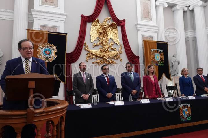 CIUDAD DE MÉXICO, 22FEBRERO2024.- En este mundo complejo, convulso y en constante cambio, la educación, los libros, el arte y la ciencia son asideros y faros de esperanza, conocimiento y conexión humana, afirmó hoy el rector de la UNAM, Leonardo Lomelí Vanegas, al inaugurar la 45 Feria Internacional del Libro del Palacio de Minería (FILPM). También subrayó la importancia de la literatura como puente entre culturas, idiomas, generaciones, por lo cual –enfatizó– es fundamental fortalecer el acceso a los bienes y derechos culturales, así como fomentar la lectura frente al consumo de otros medios de entretenimiento digitales. En el Salón de Actos del Palacio de Minería, el rector de la UNAM recordó los resultados de la prueba PISA 2022, los cuales revelaron que apenas el uno por ciento de los estudiantes mexicanos logró situarse en el nivel cinco o superior, en el que se demuestran habilidades avanzadas para entender textos largos, manejar conceptos abstractos, y diferenciar hechos de opiniones en contextos implícitos. FOTO: UNAM/CUARTOSCURO.COM