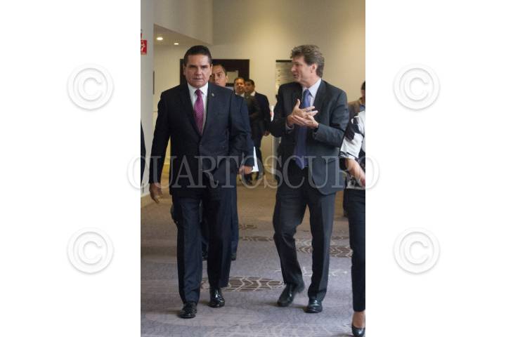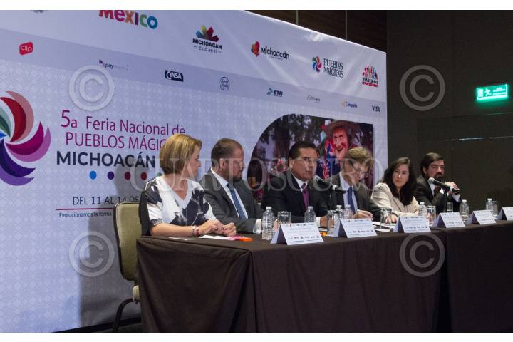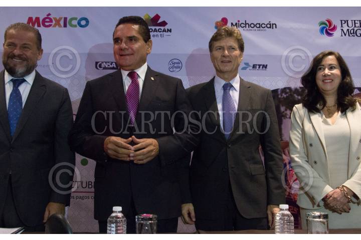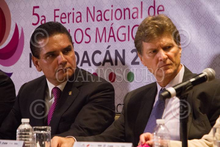 CIUDAD DE MÉXICO, 28SEPTIEMBRE2018.- Silvano Aureoles Conejo y Enrique de la Madrid, en la conferencia del anuncio de la 5ta Feria Nacional de Pueblos Mágicos, que se llevará acabo del 11 al 16 de Octubre en Michoacán. El país invitado es Ecuador. FOTO: VICTORIA VALTIERRA /CUARTOSCURO.COM