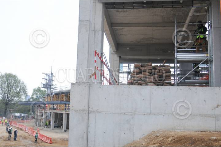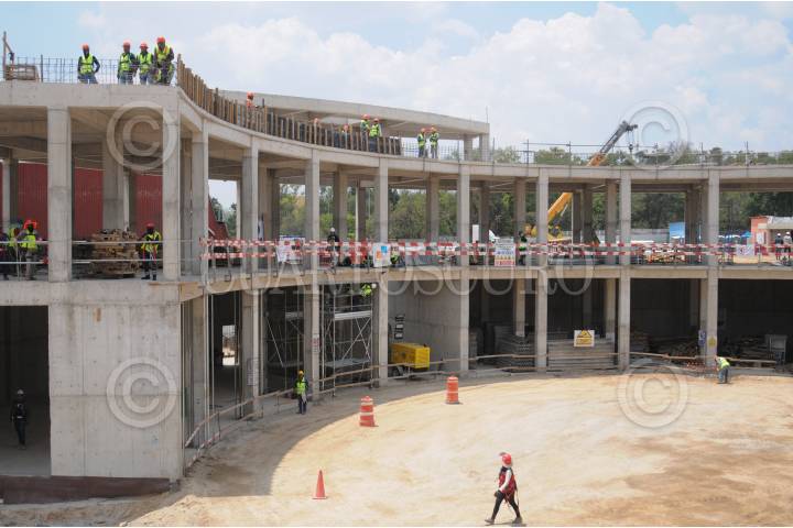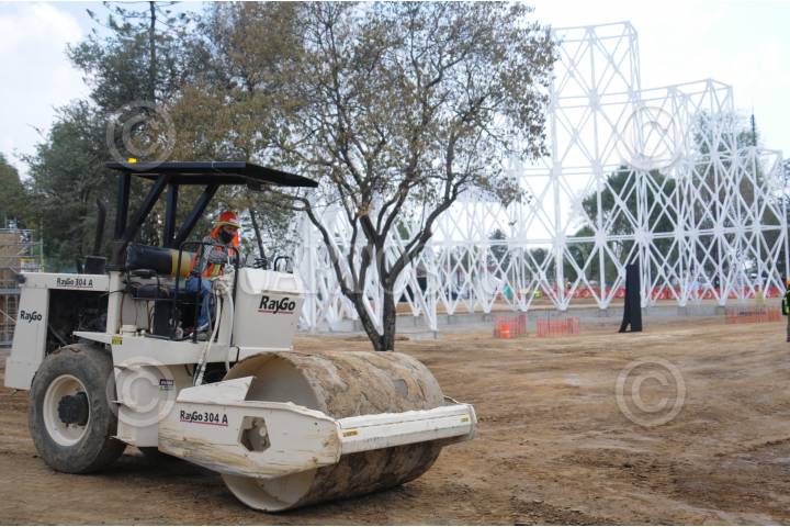 Obreros continúan trabajando en la elaboración del Parque Aztlán.