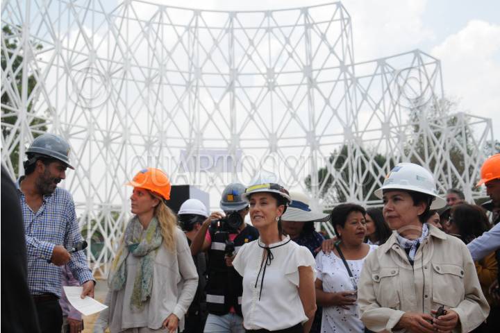 Claudia Sheinbaum, jefa de gobierno, realiza el recorrido por las obras del Parque Aztlán.