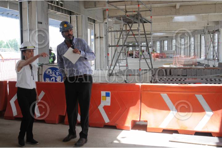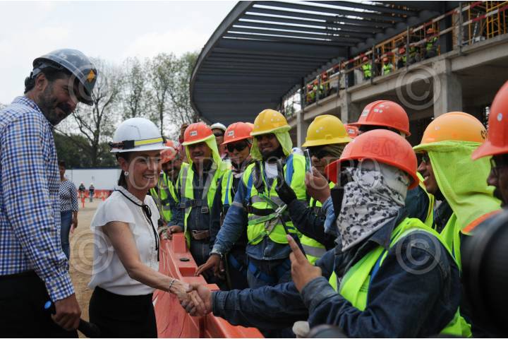 Claudia Sheinbaum, jefa de gobierno, saluda a los obreros qué realizan la construcción del Parque Aztlán.
