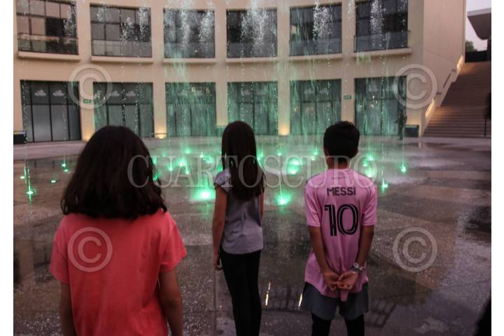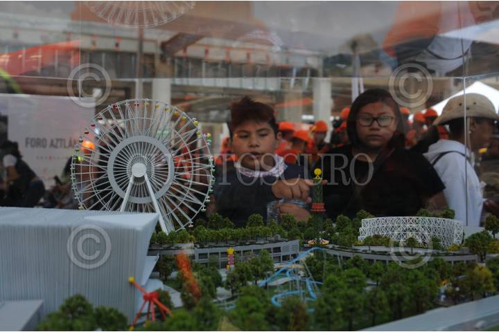 Un niño observa la maqueta de como quedaría al final de su construcción el parque Aztlán.