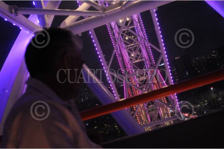 CIUDAD DE MÉXICO, 19MARZO2024. - Una persona se asoma por una de las cabinas del Aztlán 360. FOTO: DANIEL AUGUSTO /CUARTOSCURO.COM