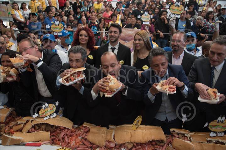 CIUDAD DE MÉXICO, 31JULIO2019.- Se llevo a cabo la inauguración de la 16 Feria de la Torta en la explanada de la alcaldía Venustiano Carranza, en donde se elaboró la torta más grande del mundo con una longitud de 72 metros, un peso de más de 900 kilogramos, 100 sabores y tipos de relleno. Además la muestra gastronómica reúne a más de 100 expositores nacionales e internacionales. El evento estuvo encabezado por los alcaldes Julio César Moreno Rivera (Venustiano Carranza), Manuel Negrete Arias (Coyoacán), Santiago Taboada Cortina (Benito Juárez) y José Luis Beato González, secretario de Desarrollo Económico de la Ciudad de México. FOTO: MARIO JASSO /CUARTOSCURO.COM