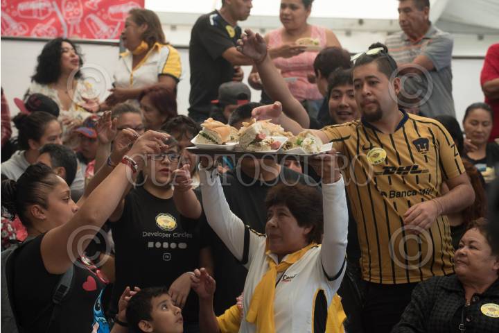 CIUDAD DE MÉXICO, 31JULIO2024. - Las personas asistentes a la feria estiraban si mano para recibir un pedazo de la mega torta. FOTO: DANIEL AUGUSTO /CUARTOSCURO.COM