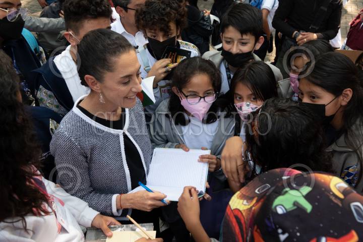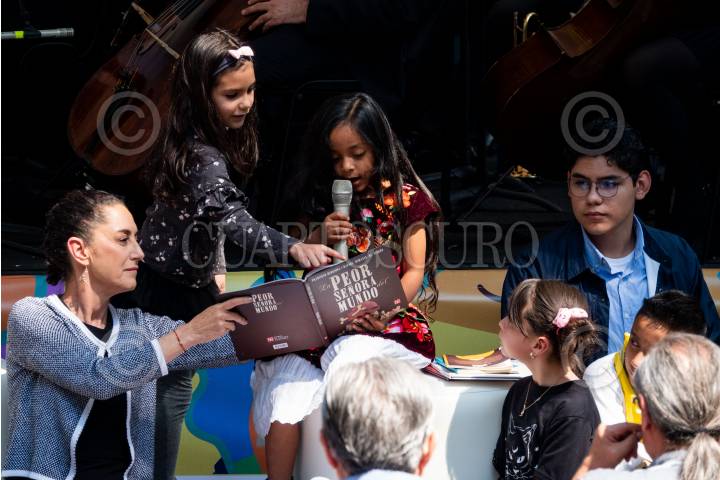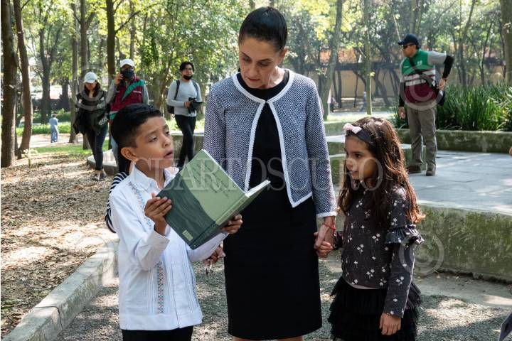 Claudia Sheinbaum durante la inauguración de la FILIJ 40ª en las inmediaciones de la primer sección del Bosque de Chapultepec.