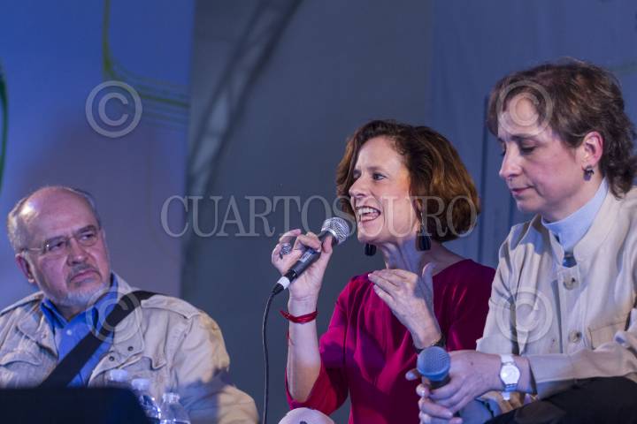 CIUDAD DE MÉXICO, 16OCTUBRE2016.- Denise Dresser, Carmen Aristegui y Sergio Aguayo participaron con una charla sobre la situación por la que atraviesa nuestro país, en la Feria Internacional del Libro del Zocalo. FOTO: ISAAC ESQUIVEL /CUARTOSCURO.COM