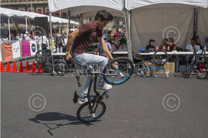 CIUDAD DE MÉXICO, 16OCTUBRE2016.- Un joven realiza acrobacias con su bicicleta en el Zócalo de la Ciudad de México. FOTO: ISAAC ESQUIVEL /CUARTOSCURO.COM