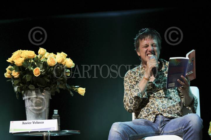 MÉXICO, D.F., 23ABRIL2015.- Xavier Velasco, escritor mexicano, durante el homenaje a Gabriel García Márquez en la Sala Nezahualcóyotl, como parte de las actividades de la 7ª Fiesta del Libro y la Rosa. FOTO: ADOLFO VLADIMIR /CUARTOSCURO.COM