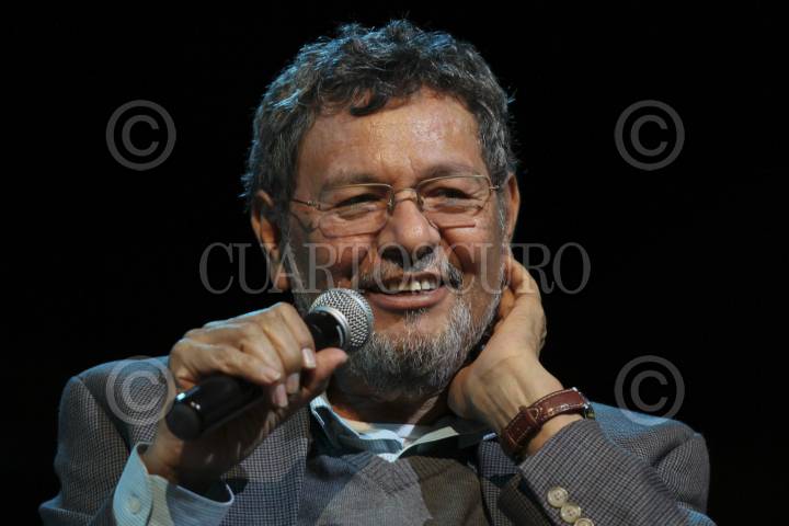 MÉXICO, D.F., 23ABRIL2015.- Élmer Mendoza, durante el homenaje a Gabriel García Márquez en la Sala Nezahualcóyotl, como parte de las actividades de la 7ª Fiesta del Libro y la Rosa. FOTO: ADOLFO VLADIMIR /CUARTOSCURO.COM