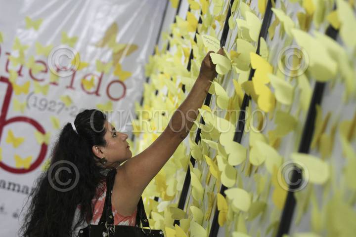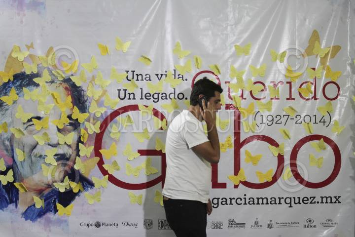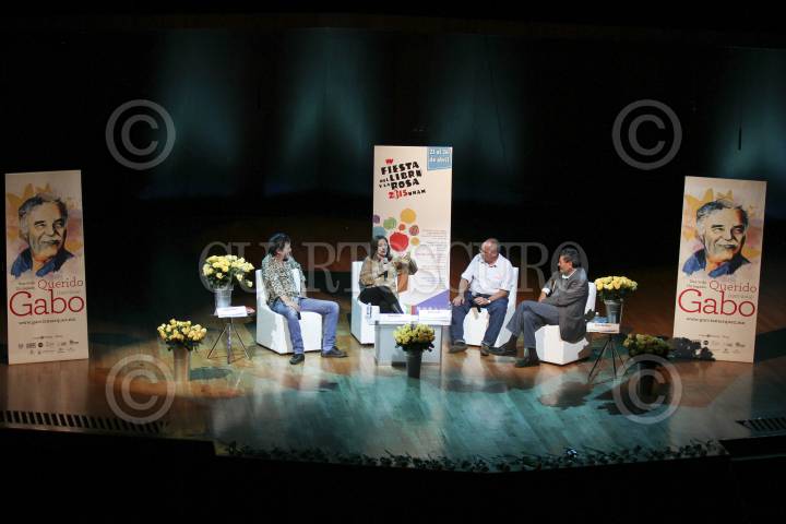 MÉXICO, D.F., 23ABRIL2015.- Los escritores Xavier Velasco, Rosa Beltrán, Benito Taibo y Élmer Mendoza, durante el homenaje a Gabriel García Márquez en la Sala Nezahualcóyotl, como parte de las actividades de la 7ª Fiesta del Libro y la Rosa. FOTO: ADOLFO VLADIMIR /CUARTOSCURO.COM
