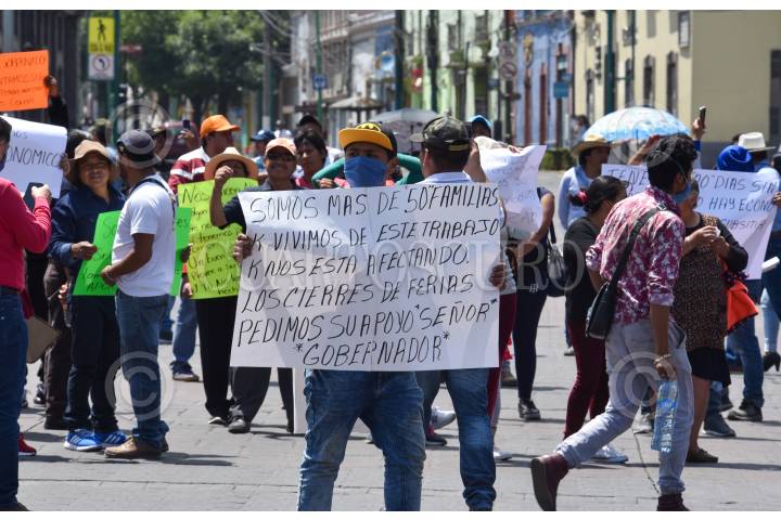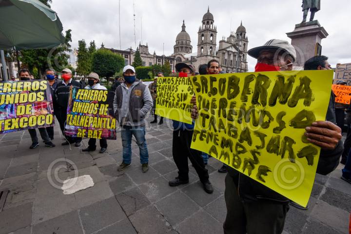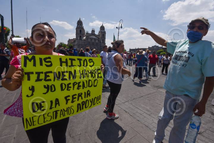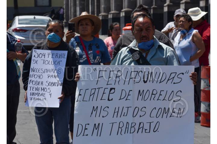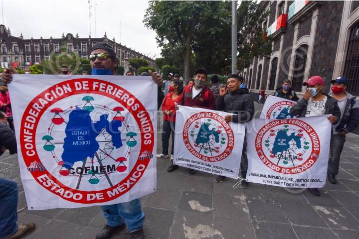 Ferieros del Estado de México se manifestaron afuera de Palacio Nacional para pedir apoyo al gobierno ya que no pueden ejercer su actividad económica debido a las restricciones del Covid-19