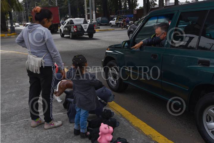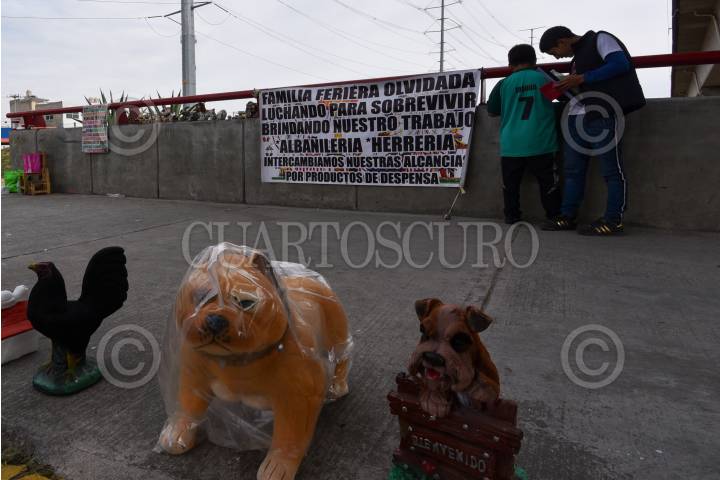 Familias que trabajan en Ferias en el Estado de México se manifestaron exigiendo apoyo ya que se han quedado sin trabajo por la contingencia de COVID-19.