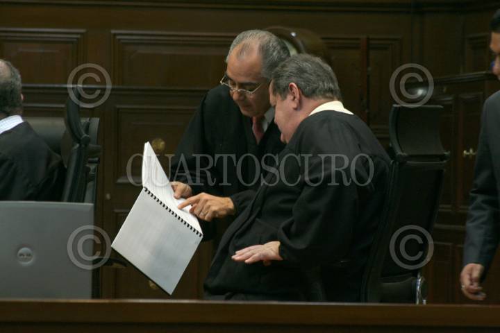 MÉXICO, D.F. 30ABRIL2007.- Los ministros José Fernado Franco Gozález y Sergio Salvador Aguirre Anguiano durante la sesión en la Suprema Corte de Justicia de la Nación. FOTO: PAOLA HIDALGO/CUARTOSCURO.COM