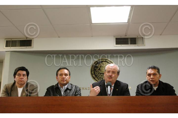 MÉXICO D.F. 26OCTUBRE2007.-El Senador del PRD, Graco Ramírez, durante la conferencia de prensa ofrecida ente los medios en las instalaciones del Senado de la República.En la imagen es acompañado por Fernado Amezcua Castillo, Marín Esparaza Castillo, lideres de los Electricistas y José H. Montes de Oca. FOTO:ISRRAEL VERA/CUARTOSCURO.COM