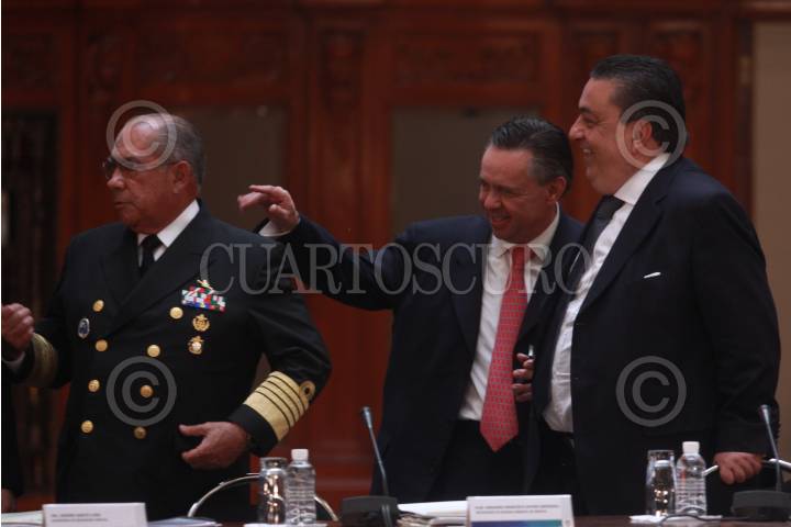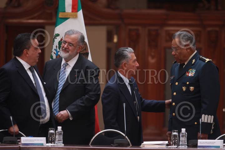 MÉXICO, D.F., 02 JUNIO2009.- Francisco Saynes titular de la Marina Eduardo Medina Mora Procurador dela República Fernado Gomez Mont Secretario de Gobernación durante la XXVI sesión del Consejo Nacional de Seguridad Pública en Palacio Nacional encabezada por el mandatario mexicano FOTO: SÁSHENKA GUTIÉRREZ/CUARTOSCURO.COM