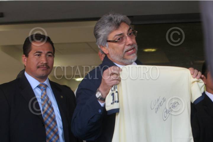 MÉXICO D.F. 21FEBRERO2010.- Fernando Lugo, Presidente de Paraguay, recibió una playera del club America y autografiada por Salvador Cabañas, la cual le firmo con quien platicó por más de 10 minutos, esto durante la vista en el hospital donde se encuentra internado después del ataque sufrido en el Bar Bar. FOTO: SAMANTHA QUIROZ/CUARTOSCURO.COM