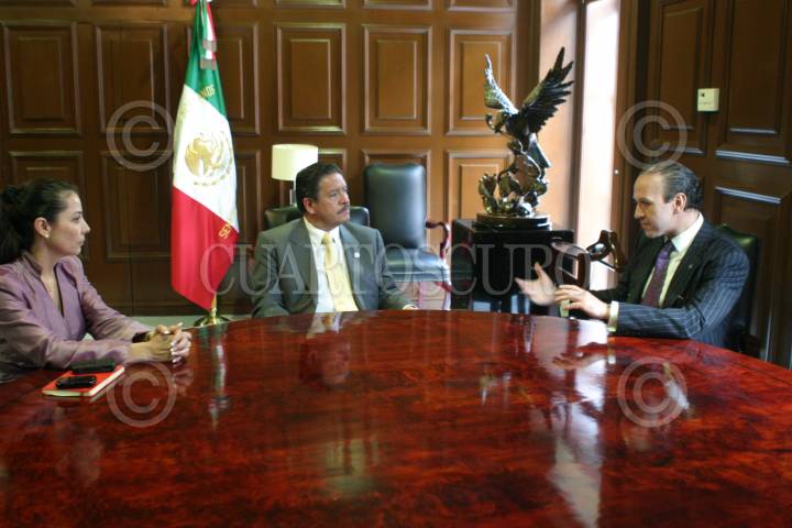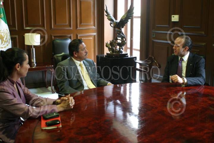 MÉXICO, D.F., 11AGOSTO2010.- Lizette Clavel, líder de la Asociación Sindical de Sobrecargos de Aviación (ASSA), Carlos Navarrete, presidente de la mesa directiva del Senado de la República y Fernado Perfecto, secretario general de la Asociación Sindical de Pilotos Aviadores, en reunión privada en la cual conversaron sobre el tema de la Compñía Mexicana de Aviación, esto en la oficina del perredista en la Casona de Xoicotencatl. FOTO: MOISÉS PABLO/CUARTOSCURO.COM