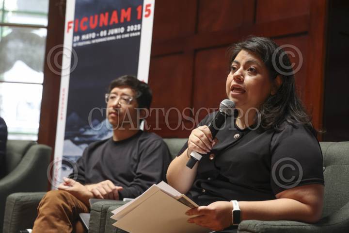 CIUDAD DE MÉXICO, 06MAYO2025.- Fernanda Becerril, directora ejecutiva de FICUNAM, durante el anunció de las actividades del festival Internacional de Cine UNAM (FICUNAM), el cual se celebrará del 29 de mayo al 5 de junio, teniendo como sede principal el Centro Cultural Universitario,. FICUNAM 2025 abrirá su decimoquinta edición con la más reciente película de la cineasta griega Athina Rachel Tsangari: La cosecha (Harvest, 2024). FOTO. MOISÉS PABLO/CUARTOSCURO.COM