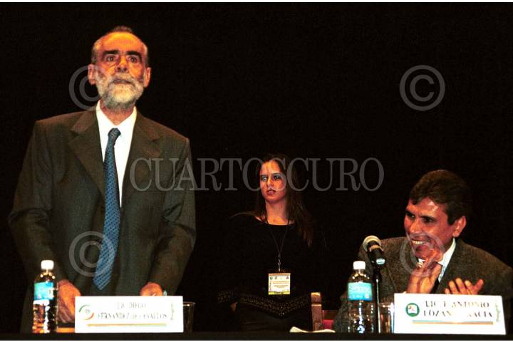 El senador Diego Fernández de Cevallos y el panista Antonio Lozano Gracia participaron en la conferencia internacional de la postura del senado mexicano ante la apertura de mercados y sus repercusiones en América Latina. FOTO:Iván Stephens/CUARTOSCURO.COM