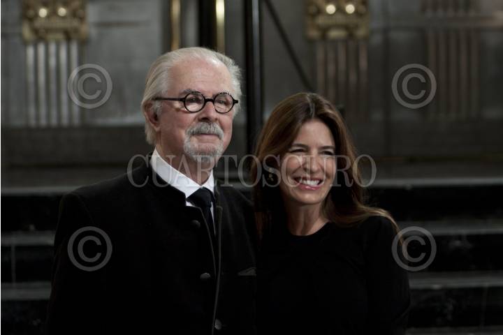 MÉXICO, D.F., 29MARZO2012.- El pintor colombiano Fernando Botero acompañado de su hija y curadora Lina durante el evento de inauguración de su exposición en el Palacio de Bellas Artes en donde se exhiben 177 piezas y estará abierta al público hasta el mes de junio. FOTO: RODOLFO ANGULO /CUARTOSCURO.COM