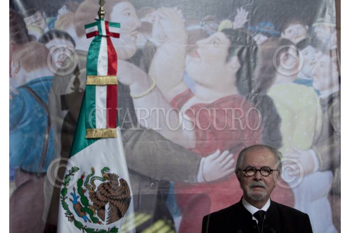 MÉXICO, D.F., 29MARZO2012.- El pintor colombiano Fernando Botero durante el evento de inauguración de su exposición en el Palacio de Bellas Artes en donde se exhiben 177 piezas y estará abierta al público hasta el mes de junio. FOTO: RODOLFO ANGULO /CUARTOSCURO.COM