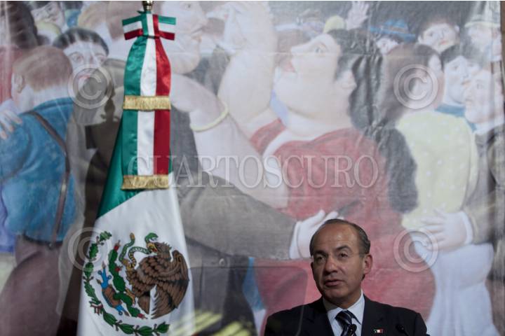 MÉXICO, D.F., 29MARZO2012.- El presidente Felipe Calderón durante el evento de inauguración de la exposición del pintor colombiano Fernando Botero en el Palacio de Bellas Artes en donde se exhiben 177 piezas y estará abierta al público hasta el mes de junio. FOTO: RODOLFO ANGULO /CUARTOSCURO.COM