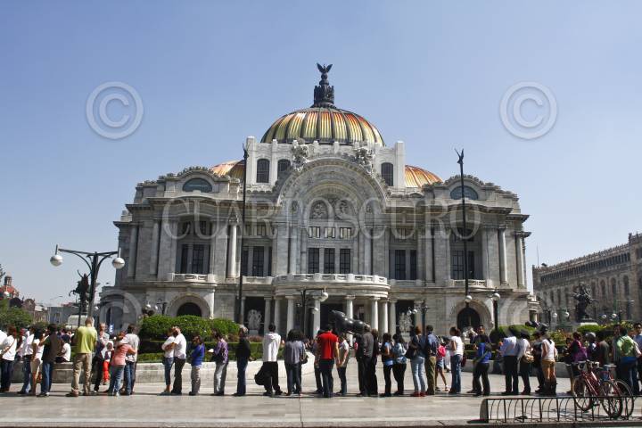 MÉXICO, D.F., 07ABRIL2012.- Cientos de personas hacen fila afuera del Palacio de Bellas Artes para poder ingresar a la exposición "Fernando Botero: una celebración", la cual recorre casi 65 años de obra plástica del artista colombiano. Según cifras del Instituto Nacional de Bellas Artes, 15 mil personas visitaron la miestra el primer fin de semana. FOTO: ISAAC ESQUIVEL /CUARTOSCURO.COM