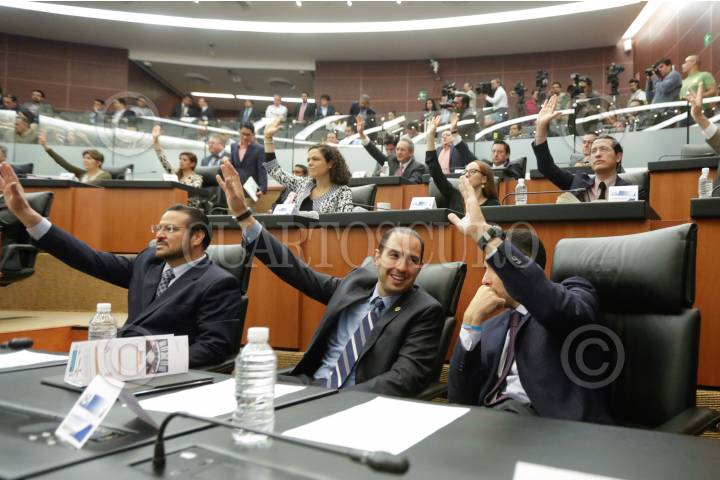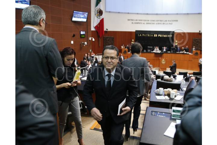 MÉXICO, D.F., 29ABRIL2015.- Los senadores del PAN encabezados por Fernando Herrera Ávila se retiraron de la sesión ante la falta de acuerdos para nombrar a magistrado del tribunal electoral. FOTO: CUARTOSCURO.COM