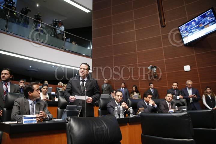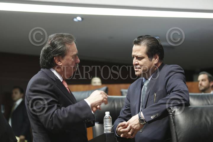 MÉXICO, D.F., 04NOVIEMBRE2015.- Los coordiandores Emilio Gamboa, PRI, y Fernando Herrera Ávila, PAN, durante la sesión en la Cámara de Senadores. FOTO: CUARTOSCURO.COM