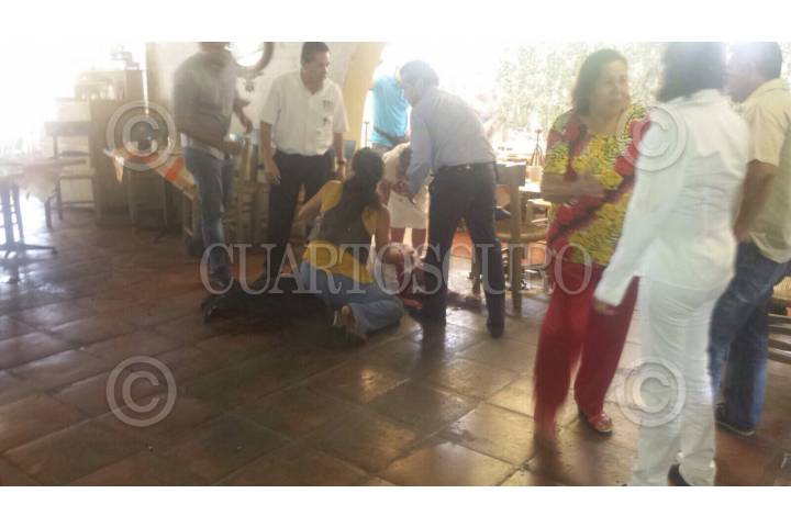 COLIMA, COLIMA, 12OCTUBRE2015.- Fernando Moreno Peña, exgobernador de Colima, fue víctima de un ataque con armas la mañana de este lunes en la capital de su estado. El exmandatario fue internado de emergencia en el Hospital Regional Universitario de esa entidad. El exrector de la Universidad de Colima Carlos Salazar Silva, quien se encontraba con Moreno Peña en el momento del atentado, resultó ileso, agregó. Moreno Peña fue atacado cuando desayunaba en el restaurante Los Naranjos con otras personas, entre ellas Carlos Salazar, quien fue su sucesor en la Rectoría de la Universidad de Colima. También lo acompañaba el periodista Miguel Acosta. Los dos agresores descendieron de una camioneta y se dirigieron al exgobernador, a quien le dirigieron varios disparos, la mayoría en el tórax, y por la gravedad de las heridas la víctima fue llevada al hospital. FOTO: ENRIQUE MURGUÍA /CUARTOSCURO.COM